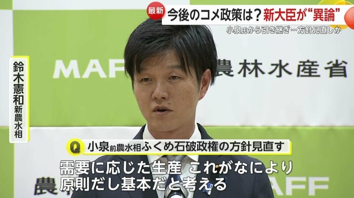 “米どころ”山形県が地盤で、農水省の元職員だった鈴木新大臣は、「前政権の方針を引き継ぐのか?」との質問に、