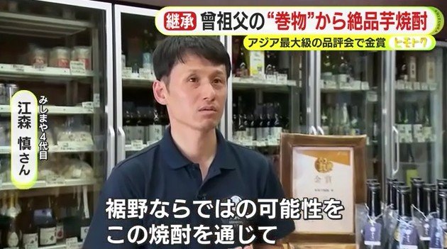 裾野市で大正時代から続く地酒専門店の4代目が手がけた芋焼酎がアジア最大級の品評会で金賞を受賞した。誕生のきっかけは曾祖父が残した巻物だった。