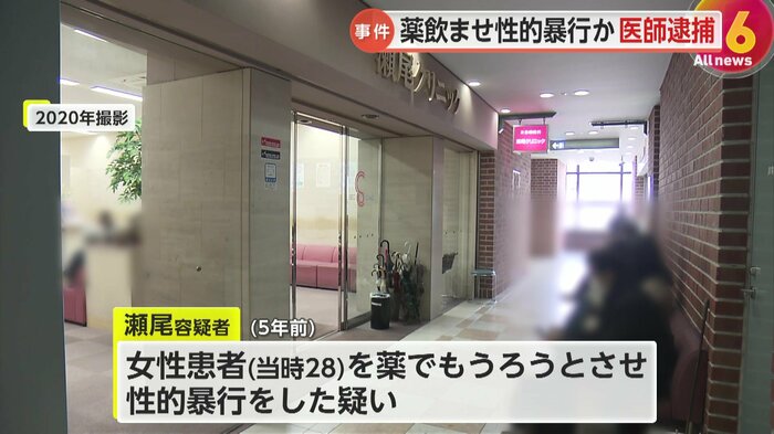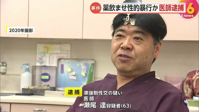 準強制性交の疑いで逮捕された医師の瀬尾達容疑者(63)は5年前、兵庫・尼崎市の耳鼻咽喉科のクリニックで、女性患者(当時28)に対し何らかの薬を投与して意識をもうろうとさせ、抵抗できない状態で性的暴行をした疑いが持たれている。