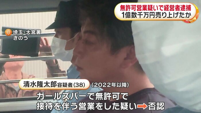 清水隆太郎容疑者(38)は2022年以降、さいたま市で経営するガールズバーで無許可で接待を伴う営業をした疑いが持たれていて、容疑を否認しています。