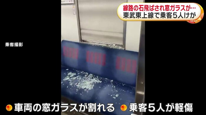 警察が調べたところ、車両の窓ガラスが割れていて乗客5人が軽いけがをしました。