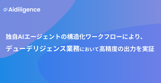 株式会社Herix(本社:東京都中央区、代表取締役CEO:中村丞、以下「Herix」)は、M&A・投資向けデューデリジェンス支援プラットフォーム「Aidiligence」に、"専門家の調査プロセス"を工程ごとに分担し、複数のAIエージェントが連携して統合できる構造化ワークフローを実装し、汎用LLMを超える再現精度を実現しました。