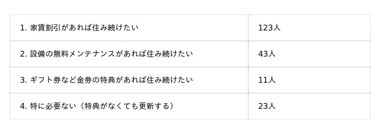 更新時に“特典”や“サービス”があれば、今後も住み続けたいと思いますか?