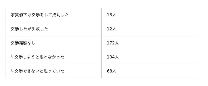 過去に契約更新の際、管理会社や大家さんと賃料交渉をしたことはありますか?