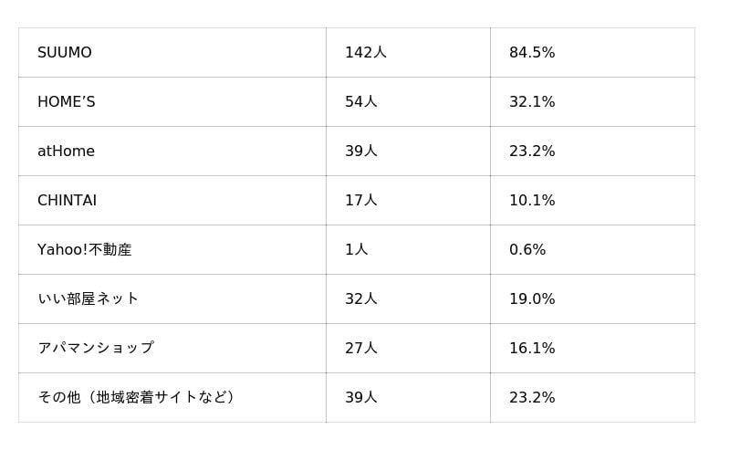 ネット検索で最も多く利用されていたのは、圧倒的に「SUUMO(約85%)」。