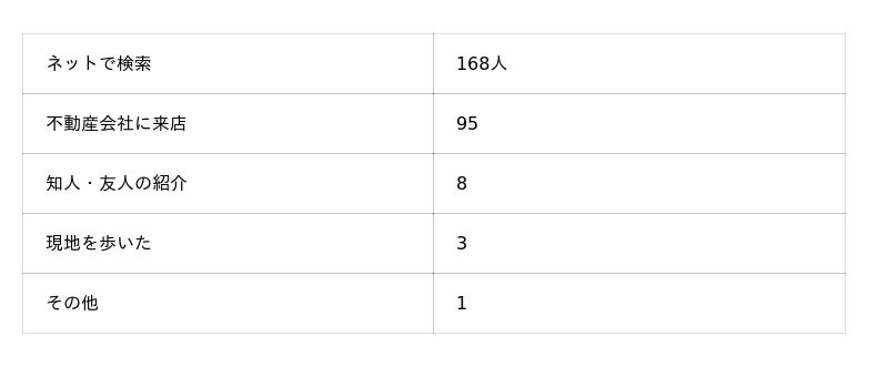 「その他」としては「Instagram」「TikTok」「地元の管理会社サイト」などの回答も見られ、近年はSNSを初期の情報源として活用する層も増えています