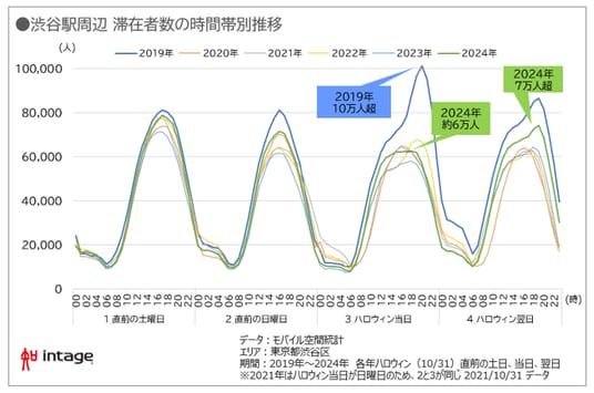 ・渋谷ハロウィン当日の人流、昨年はピーク時間帯約6万人とコロナ前から大幅減少。今年は金曜で再び集中の可能性も