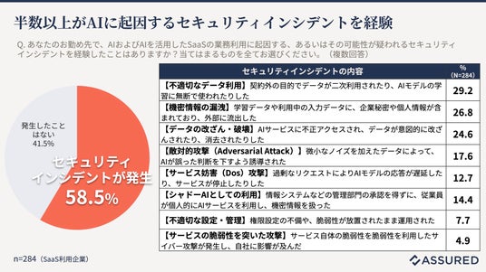 半数以上が、AIおよびAIを活用したSaaSの業務利用に起因する、あるいはその可能性が疑われるセキュリティインシデントを経験