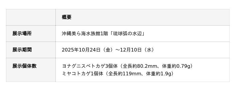 沖縄美ら海水族館(所在地:沖縄県国頭郡本部町 館長:佐藤 圭一)では、ヨナグニスベトカゲ(与那国島固有種)の繁殖に世界で初めて、また、ミヤコトカゲの繁殖に日本で初めて成功し、繁殖個体の期間限定展示を水族館出口付近「琉球弧の水辺」で開始いたします。