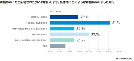 その他の影響では、ルートの変更やテント泊の中止、クマ対策グッズの用意などの回答が集まりました。