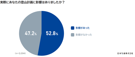 2. 登山計画に影響があった方は約半数。具体的な影響として「行く山を変更した」が約63%で最多。
