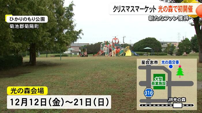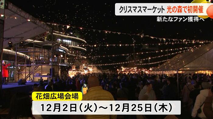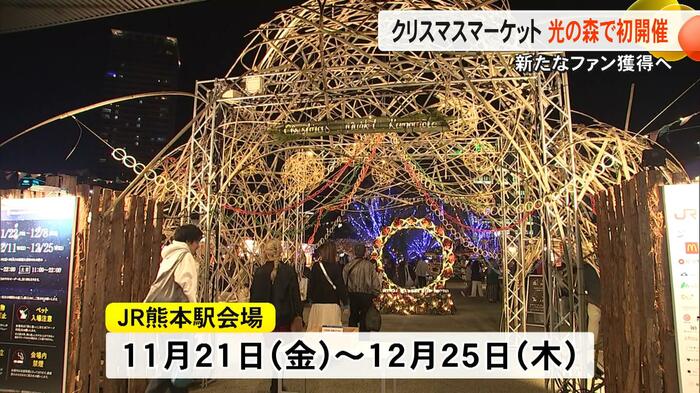 クリスマスマーケットについて、熊本市の熊本駅と花畑広場の会場に加えて、2025年は初めて菊陽町でも開催される予定で、計約110万人の来場を見込んでいる。