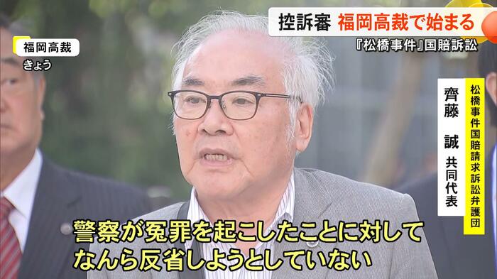 松橋事件国家賠償請求訴訟弁護団の齊藤誠共同代表は「警察が冤罪を起こしたことに対して、何ら反省しようとしていない。そういう体質がまた冤罪を引き起こす。なんとしてでも控訴審では県・県警に対し勝訴を目指して頑張りたい」と、控訴審の前に述べた。