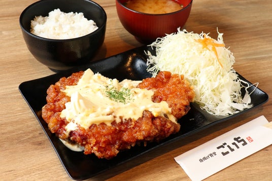 <パンチの効いた濃い味わいで人気の看板メニュー、チキン南蛮定食>