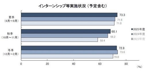 「夏季」73.3%、「秋季」68.1%、「冬季」72.8%。いずれもオープン・カンパニーが中心