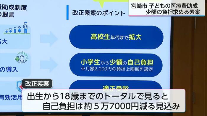 小中学生の自己負担額は増えることになるが、宮崎市によると、出生から18歳までのトータルで見ると約57000円 負担が減る見込みだという。
