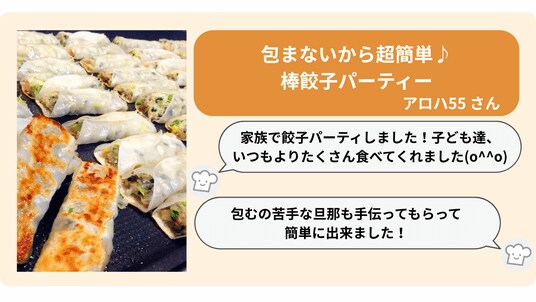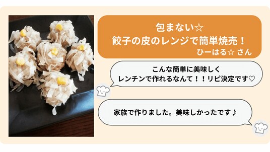 仕事と家事の両立という時間制約の中では、特に時間がかからず・失敗しづらい料理方法が求められます。包まずに皮に具材を乗せるだけという「包まないシュウマイ」「包まない餃子」は、そうしたニーズに応え、家族のイベントとしての機能も備えたソリューションとなっています。