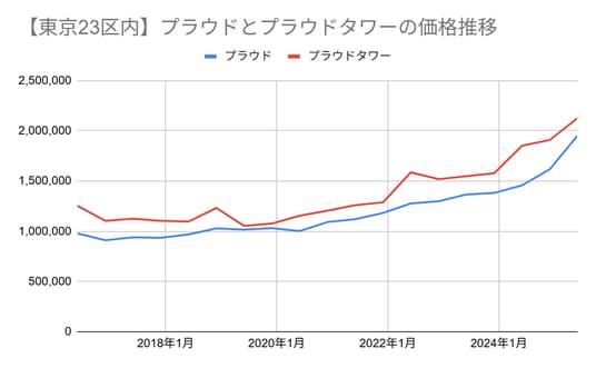 23区内のプラウド・プラウドタワーの価格推移(マンションナビ調べ)