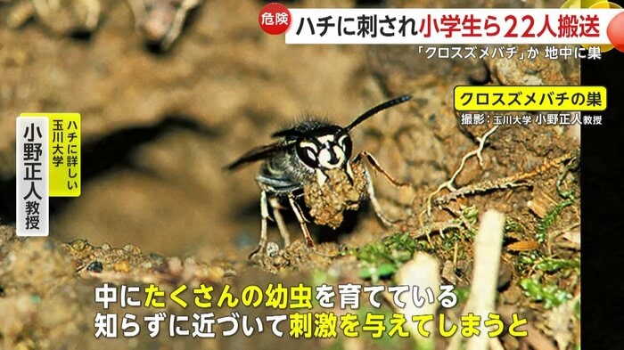 小野教授によると、「クロスズメバチ」はミツバチくらいのサイズで、毒の量は多くないという。