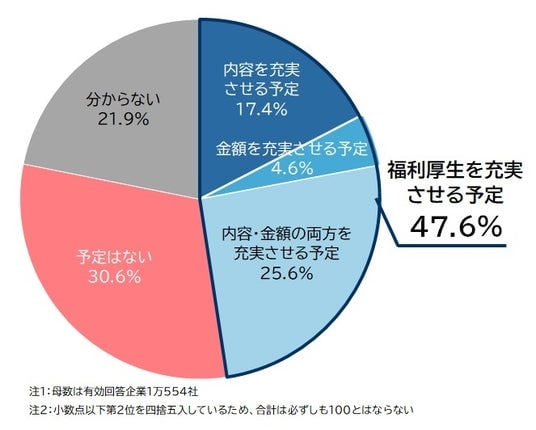 企業の約5割が福利厚生の充実を予定 中小企業では資金面の課題も