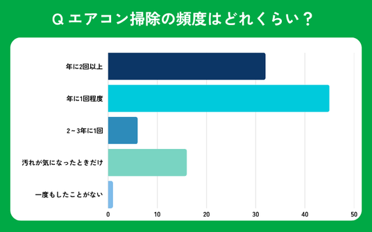 ・エアコン掃除は年1回ほど行う人が8割以上だが、汚れが気になったときにスポット的に掃除を行う人もいる。