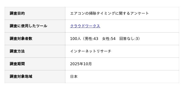 エアコンの掃除タイミングに関するアンケート調査の概要