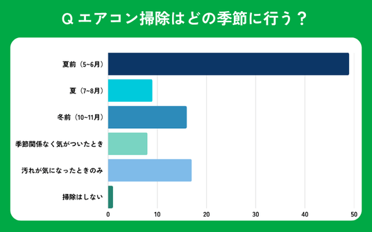 ・エアコン掃除を行う時期として最も多いのは「夏前(5~6月)」。