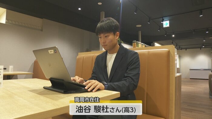 高岡市に住む高校3年生の油谷駿杜さんは、高校1年生のときにアプリ開発などを行う会社を設立した。中学生の頃から動画編集を手がけ個人事業主として活動していた油谷さんは、自分の得意分野が人の役に立つ喜びを知り、特技のプログラミングを生かした本格的な起業を目指すようになった。