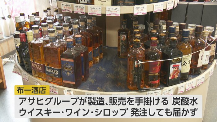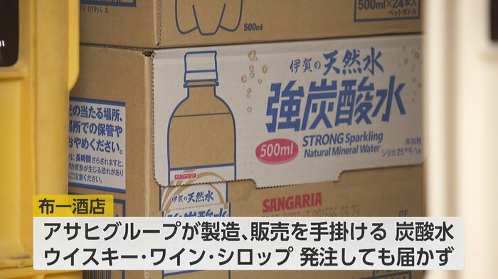 アサヒグループが製造・販売を手掛ける炭酸水をはじめ、ウイスキーやワイン、サワーを作るシロップは発注しても届かない状況が続いている。