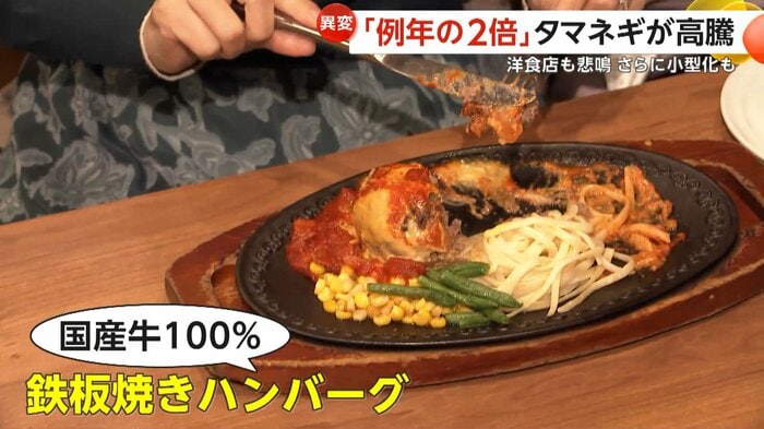 アツアツの鉄板に乗った肉汁溢れるハンバーグに、昔懐かしいトマトソースのナポリタン。そんな洋食にも欠かせないタマネギの価格が高騰、さらに小型化する異変が訪れていた。