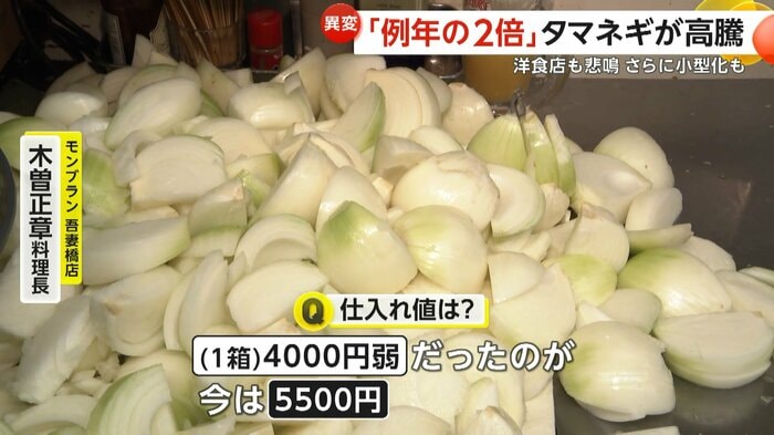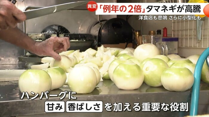 ハンバーグなどに欠かせないタマネギの価格が例年の2倍以上に高騰し、洋食店では仕入れに苦労していた。さらに猛暑の影響で根が栄養を吸収できず、小玉化が進行。この傾向は来春まで続く見通しだ。