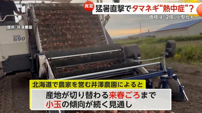 日本一のタマネギ産地・北海道で農家を営む伊澤農園によると、産地が切り替わる来春頃まで小玉の傾向が続く見通しだという。
