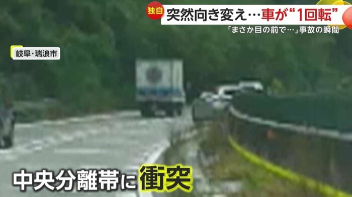岐阜・瑞浪市を通る高速道路で18日に撮影されたのは、突然、走行中の車が向きを変え、道路脇の茂みに突っ込む事故の瞬間だった。