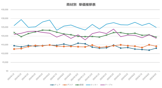 株式会社オフィスバスターズ(東京都中央区、代表取締役社長:熊谷 正慶<東京証券取引所 TOKYO PRO Market 証券コード:5890>、以下「当社」)は、2025年9月度の「中古オフィス家具指数」を取りまとめました。毎月当社の中古オフィス家具動向を広く皆様へお伝えすることで、当社をご利用いただいた法人様および個人の皆様の動向や推移などをご案内しています。