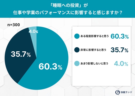 - 「睡眠への投資はパフォーマンスに影響する」と感じる人は96.0%