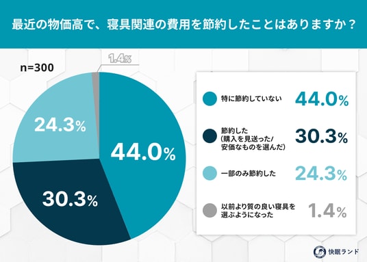 - 物価高でも寝具費を「節約していない」人が44.0%で最多
