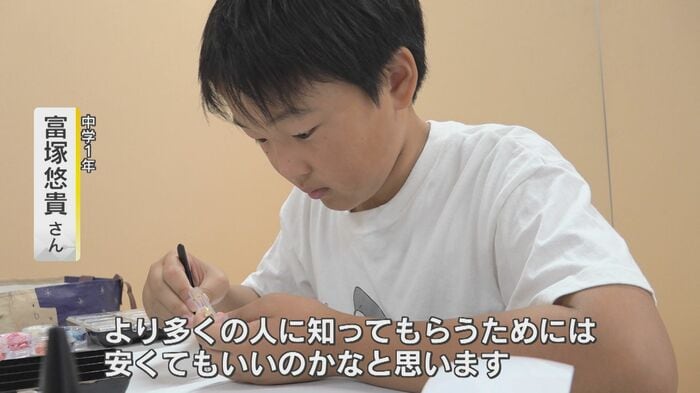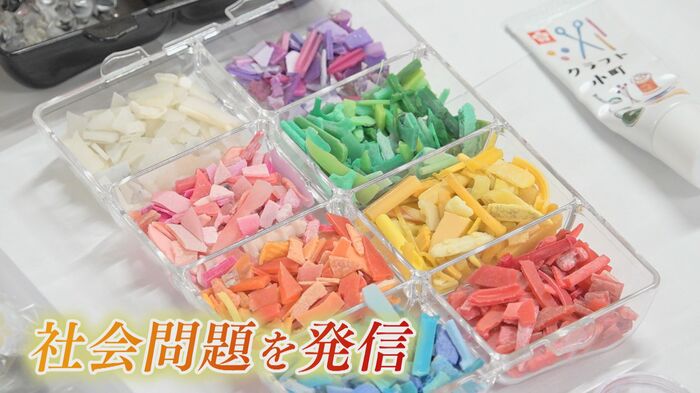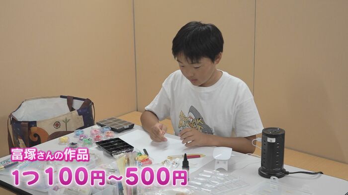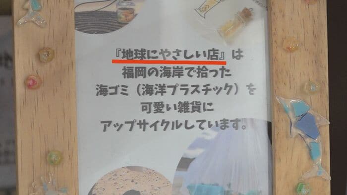 商品を制作したのは中学1年生の富塚悠貴さん。富塚さんが、このスペースを借りたのは、或る思いからだった。「海洋プラスチックという海に落ちているゴミを拾っています」と話す富塚さん。「僕が作っている商品をお客さんが買って貰って、環境問題について知って欲しい」のだという。