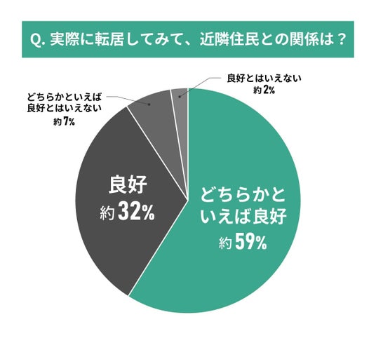 約91%の購入者が近隣住民と良好な関係を築いています。購入前に不安を感じていた層も含めて、実際には大きな問題なく生活できていることが分かりました。「挨拶をすれば挨拶を返してくれて普通の人で安心していました」「思ったよりも気さくな方が多かった」といった声が多く、購入前の不安が杞憂に終わるケースが大半です。