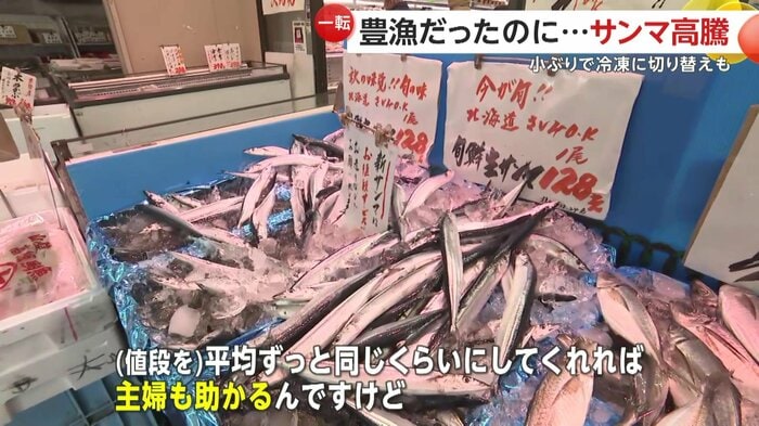 店の客に話を聞くと「高くなりましたね、少し」「(Q.サンマ買いました?)サンマ買いません。最初の頃は安く買えてたから良かった。(値段を)平均ずっと同じくらいにしてくれれば主婦も助かるんですけど」などと、消費者側も価格の変化を実感していた。