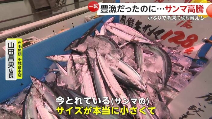 店長によると、最近は市場に出回るサンマの量が少なくなっているという。