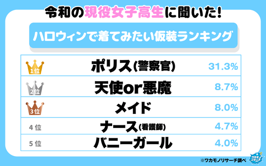【令和の現役女子高生に聞いた! ハロウィンで着てみたい仮装ランキング】