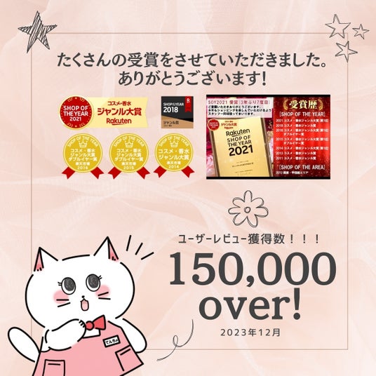 ■ 15万件のレビューが支える、実践的なノウハウピュアクリエイトが運営する「おしゃれcafe」は、楽天市場において3年連続*でRakuten SHOP OF THE YEAR(楽天ショップ・オブ・ザ・イヤー)を受賞するなど、お客様から高い評価をいただいており、そのレビュー総数は15万件を超えます。