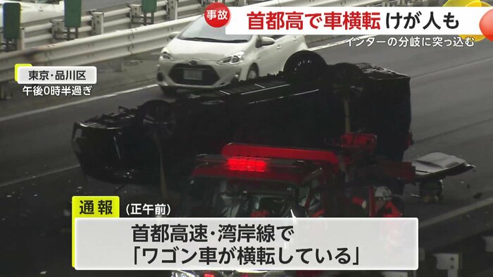 25日正午前、東京・品川区東八潮の首都高速・湾岸線東行きで、「ワゴン車が横転している」と目撃者から110番通報があった。