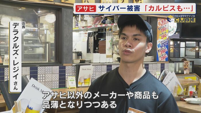 店長のデラクルズ・レジイさんは「アサヒ以外のメーカー、商品も品薄となりつつある。最悪、客に提供できなくなるものが出てくることを懸念している」と心配顔だ。