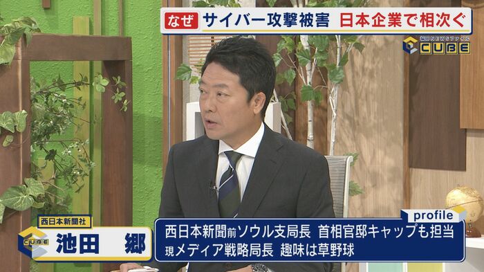 西日本新聞のメディア戦略局長の池田郷さんは「企業にとってサイバー攻撃は死活的な問題で、今回、攻撃を受けたアサヒだけではなく、ほかのメーカーにも被害が及ぶので影響は大きい。隣の韓国では、政府が『ハッキングとの戦争』と対策の必要性を呼び掛けている。日本でも官民を挙げた対策が急がれる」と懸念を表す。