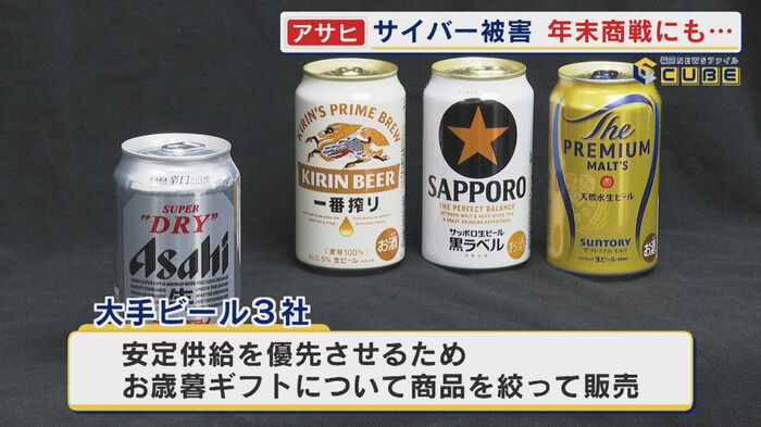 アサヒビールは、今季のお歳暮ギフトをスーパードライ関連の3商品に限って販売すると発表。キリン、サッポロ、サントリーのビール大手3社も安定供給を優先させるため、ギフト商品を絞って販売するとしている。