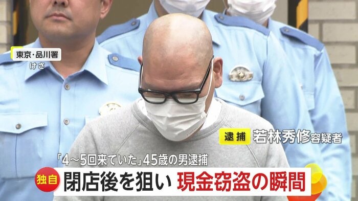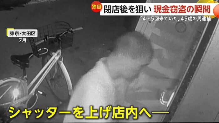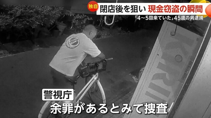 防犯カメラの映像には、東京・大田区の閉店後の飲食店に7月、自転車で現れた若林容疑者は、シャッターを上げるとそのまま店の中へ入って行く様子が映し出されていた。