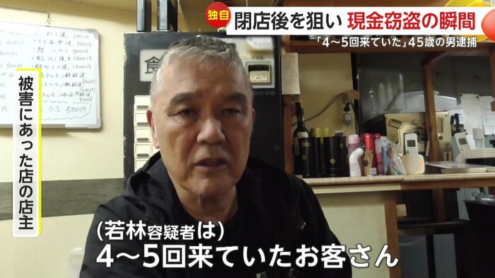 被害に遭った店主は防犯カメラに写る容疑者に驚きを隠せない。