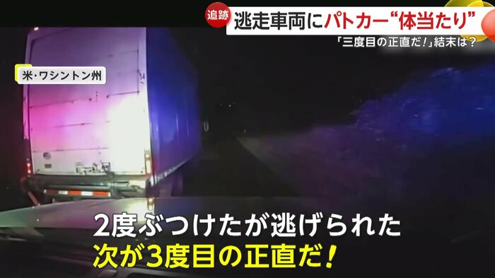 しかし、トラックは走行を続ける。パトカーはスピードを上げ、2度目の衝突を試みた。