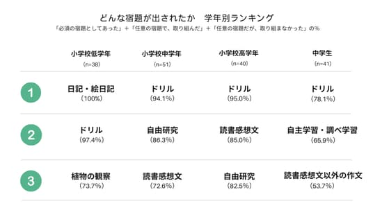 ・この夏小中学生に出された宿題の1位は「ドリル」